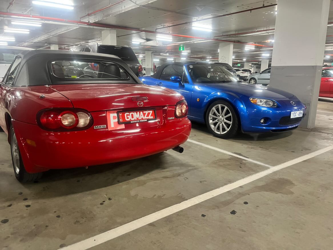 Ahh the Miata once you gotten the taste for the fun driving style of this Japanese roadster with a bit of a british bite you can never go back to anything else. After I had lost the Green 99' NB to the Easter Sunday of 2023 I was on the hunt for a new car. Now just for reference (As seen in the other post) I had only owned that Green Machine for only about six months but throughout those six month I Had learned valuable lessons one being don't just buy it for its km's buy it for it service and reliability history and most of all... MAKE SURE IT IS NOT A PARTS PROJECT IN WAITING. So with that being said I was looking for a new car and some of the cars I went through were interesting. I started at looking at JDM Icon dream car being the GC8 WRX but by the time I was looking they were approaching the $20,000 to $30,000 dollar mark which for a turbo pocket rocket with more problems than a someone with daddy issues I had to pass up on that tempation (Also the last car got wreck with half the power I would hate to see what would've if it had of been a WRX (Insert Shudder)). So I started looking a good old reliable NA Miata's which were still in my price range so the search was on. Throughout my looking the prices were resable and the cars were decent and for the most part they came with service and history papers which was great, the bad part was that they were Eunos and dad wasn't too keen on me getting a grey import car but I persisted and I eventually found a 89 BRG Limited Edition Eunos in ACT. The car came in the desirable beige leather interior, Hardtop, Automatic and even a steering wheel cover with Eunos logo. Problem was that when we inquired into the KMS of the car it turned out the seller had still been using the car and had added a total of 40,000kms extra to what was being advertised so we moved on. But on the up side I had gotten a ton of cash thanks to the insurance payout from the crash and Tax return (Which equaled to $12,000 dollars all up) so now with all this money I was on the hunt for A red MX-5. By the time it had gotten to the tail end of the year I was getting my license back (from getting caught by hidden car speeding cameras Yarra bend 3 time) I was getting close to Miata season, Summer Time. But luckily for me a ad popped up for a Red 2003 NB Mazda MX-5 with 103,000kms and for sale in Toorak but it was $25,000 and I only had $15,000 so I had some time to go. But I did ask my dad to ask the seller about his car. My dad looked at some of the photos of the car and realized some time after that the guy was in one of the photos was someone he use to work with back at his old job. So dad gave him a call and had a good chat, good thing was the guy was happy to have me and dad go and have a look at the car. Dad had given me some info about that made me nervous but that all went away when I met him, He was super friendly, shook my hand, gave me a big rundown of the cars history and service life which was squeaky clean and let us have a test drive. Once that was all done dad told him the Young Fella (Me) Needed to get some money for RWC, But this guy the legend he was would tell other interested in the car that we were already making the steps to buy the car (So essentially for the time being took it off the market which was very very kind of him). The car came from the RWC Check with flying colors and we were even told by the checker that the car was one of the clean and mechanically well MX-5s he had seen telling us we would be stupid to pass up on it. So the next week while i was in pre production for my Uni film (oh Yeah i was at uni while this was all going on) We went back and saw the Guy and made a price offer of $17,500 (Excluding Government charges) and the Legend there and then shook my hand and told me that the car is ours. Finally after the heartache of losing the last Miata I had a new one to fill that void of the possible journeys I could've had with my old Miot now I could fulfill them with the New Miot and to say I was happy is a understatement. So a week went by and after I had finished me and mates Uni films I walk to parliament station took the train home, got the car paper work done and ready told my little sister that she could come along to pick up the car if she wanted (Which she said yes) and at 4:30 we set off. We got to the sellers house at 5:00 we went in signed the paper, Got offered a drink dad and him had a chat and then it was time to set off and that we did. Me and My sister drove along bay road listening to the banger Just Around the Corner By Herbie Hancock. We got home and I was super happy and proud to have the car in the driveway. and Now we get to 2025 and in the past 2 or 3 (not good with numbers) years of ownership the car has run flawlessly with only me taking the bumper off and running into a bollard being its only faults (courtesy of me). The engine has not once broken down. I have taken this car Camping, Taken it on the Annual Fro Bro Great Ocean Road Summer Drive, I've taken the car on nights out and date nights, even night country drives. This car has been the way car ownership should feel in the Best of ways. The car has been driven, enjoyed, loved, cleaned and most of all put a smile on everyone who has seen it's iconic Miot smile and to say I will be selling it anytime soon... You must be dreaming Mate.